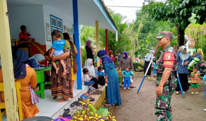 Babinsa Salak Koramil 0821/07 Randuagung Serda Eko Mujiono, melaksanakan pendampingan kegiatan pemantauan tumbuh kembang Balita bertempat di Ponyandu Mawar Dusun Salak Tengah RT 014 RW 007 Desa Salak Kecamatan Randuagung Kabupaten Lumajang, Jawa Timur, Rabu (2/6/2023)