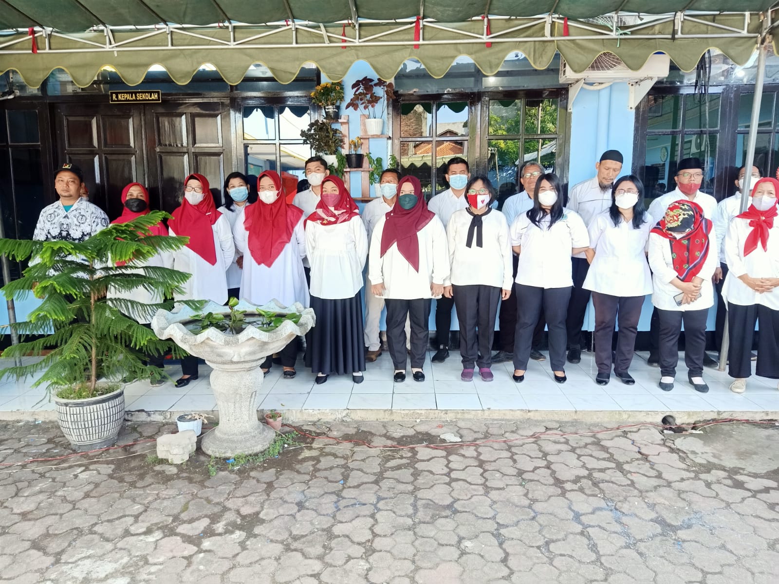 Pagi yang cerah, peringatan HUT RI ke 77 tahun 2022 SMK Pariwisata Satya Widya Surabaya dijalankan dengan sungguh-sungguh (17 Agustus tahun 2022).
