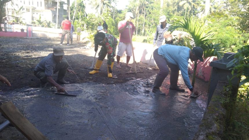 Bina Kebersamaan, Babinsa Bersama Warga Kerja Bakti Pengecoran Masdrasah