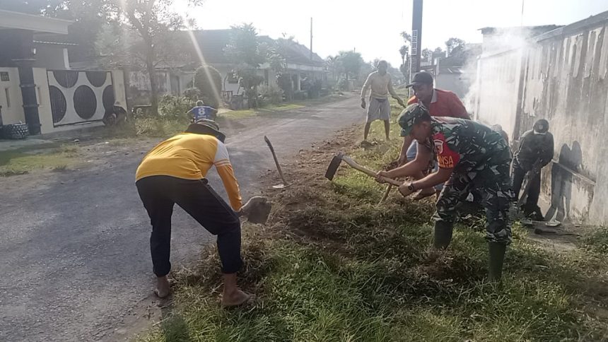 Jaga Kebersihan Lingkungan, Babinsa Bersama Pemdes Kunir Lor Giatkan Kerja Bakti