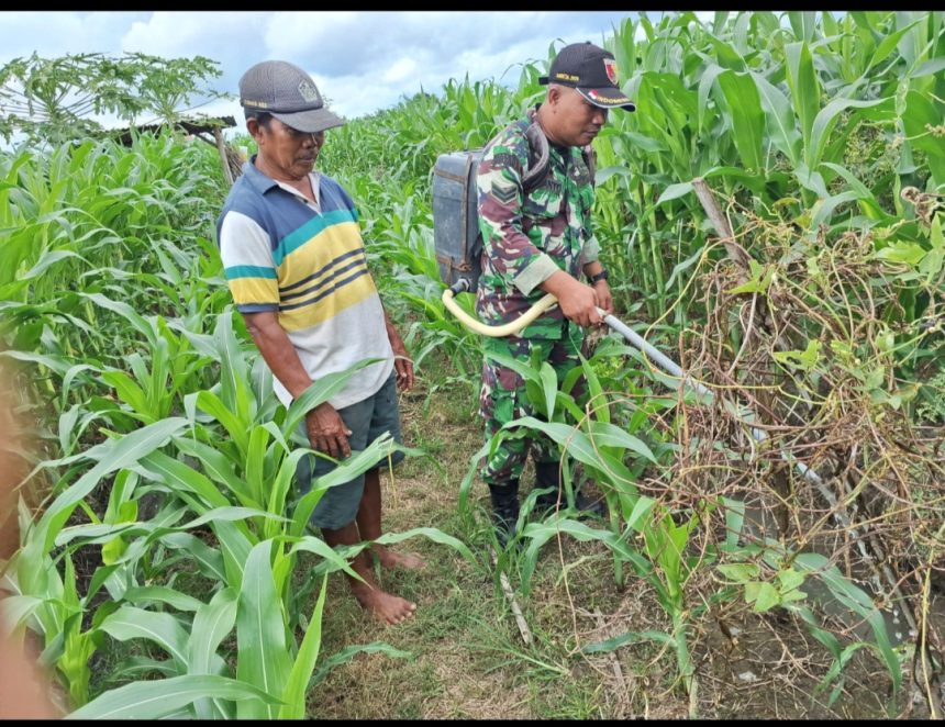 Pendampingan Babinsa Penyemprotan Tanaman Jagung Mendukung Kegiatan Ketahanan Pangan