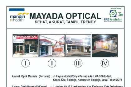 OPTIK MAYADA HADIR DI EMPAT LOKASI, LAYANI BPJS DAN ASURANSI MANDIRI INHEALTH: SEHAT, AKURAT, TAMPIL Hb TRENDY