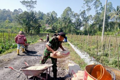 Sigap, Babinsa Supiturang Bantu Warga Perbaiki Jalan Akses Penghubung Antar Dusun
