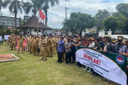 Ratusan massa AKD dan perangkat desa, menolak pengunduran diri ketua DPRD Lajang