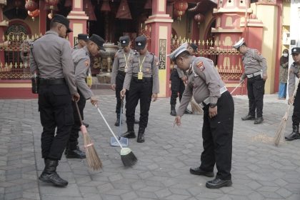 Sambut HUT Bhayangkara 78, Polres Gresik Bakti Sosial di Klenteng Kim Hin Kiong