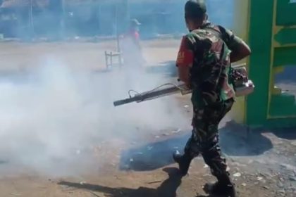 Babinsa Bago, Laksanakan Pendampingan Kegiatan Fogging di Wilayah Binaan