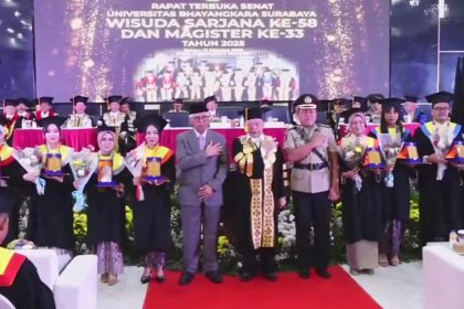 Foto: Rektor Ubhara Surabaya foto bersama Wisudawan Wisudawati Sarjana dan Magister Terbaik…