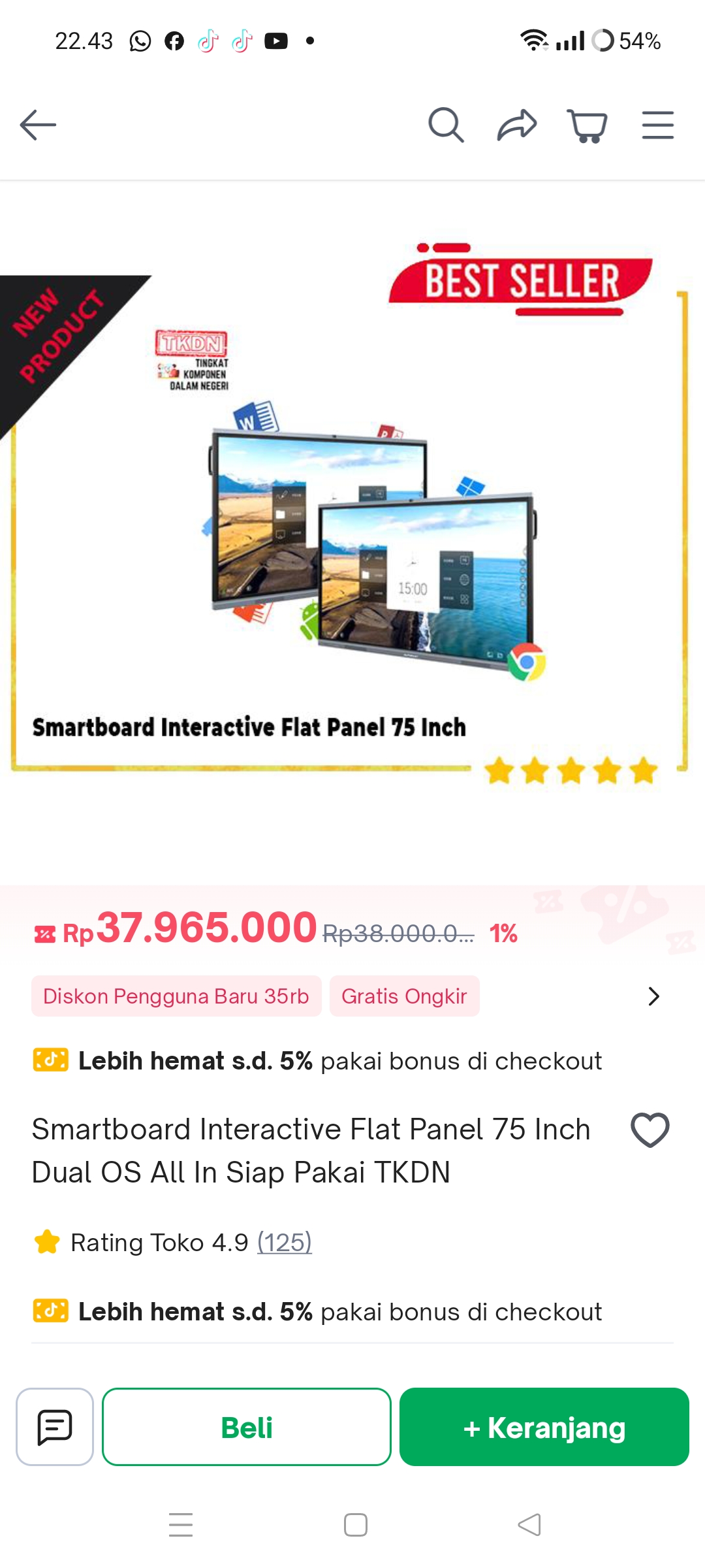 Gak masuk akal, Bidang SMK Dinas Pendidikan Jawa Timur menganggarkan Rp. 5.726.416.000 hanya untuk beli 34 Unit Interaktive Flat panel 75″ rencana dibagikan ke 34 SMK Swasta di Surabaya.