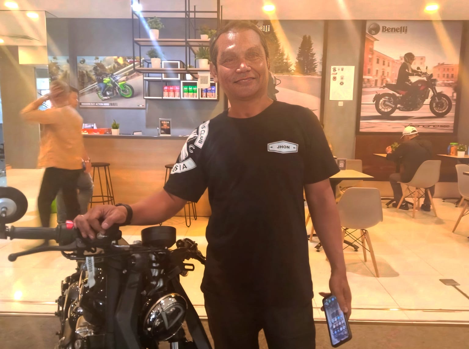 ” Ya, saya intinya berterima kasih kami sebagai user ya pengguna dari produk Benelli, Kiwi, Morbidelli dan Benda itu kami jadi satu di X Brotherhood. Jadi nama komunitas kami X Brotherhood Chapter Jatim. Berterima kasih kami diundang dan kebetulan dapat VIP member di Benelli Marvel ini. Jadi untuk kedepannya saya juga mengajak rekan-rekan komunitas yang lain, bahwa Benelli Marvel ini istilahnya menyediakan wadah untuk tempat nongkrong rekan-rekan komunitas. Iya, jadi istilahnya motor Benelli ini modelnya itu lain daripada yang lain. Enggak pasaran. Terus yang kedua, ini untuk mewadahi teman-teman bahwasannya di Marvell City Surabaya ini sudah tersedia tempat untuk nongkrong, Nah, untuk VIP member ini untuk rekan-rekan komunitas yang ingin mendapatkan VIP member itu bisa langsung datang ke Benelli Marvel ketemu dengan Pak Willy. Nah, silakan nanti menikmati istilahnya program yang sudah disediakan, VIP yang ada diskon. Contoh misalkan mau nongkrong di Excelso, kan lumayan. Kopi Rp50.000 diskon 30% kan lumayan “, ungkap Jhoni. S sebagai Penerima VIP Member Benelli Marvel Surabaya.