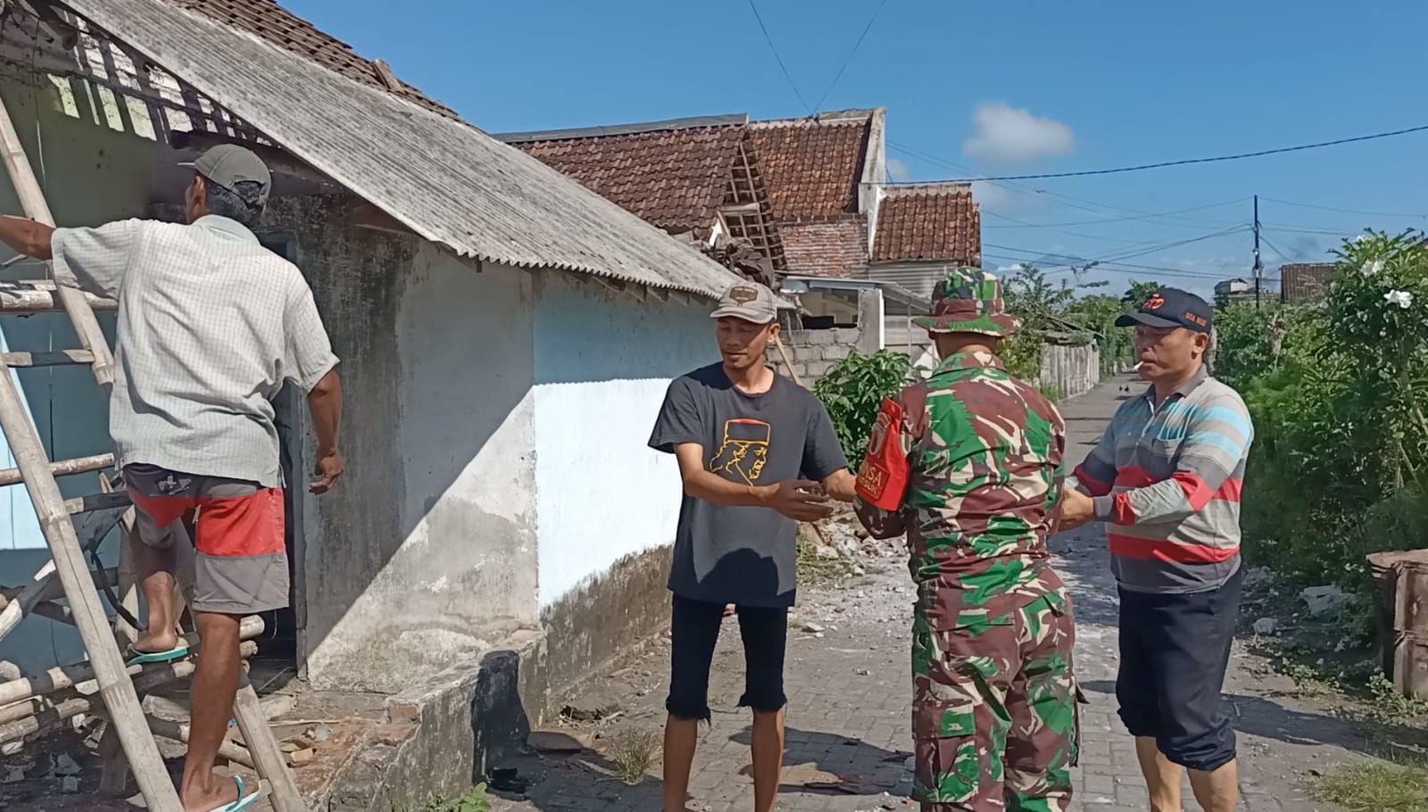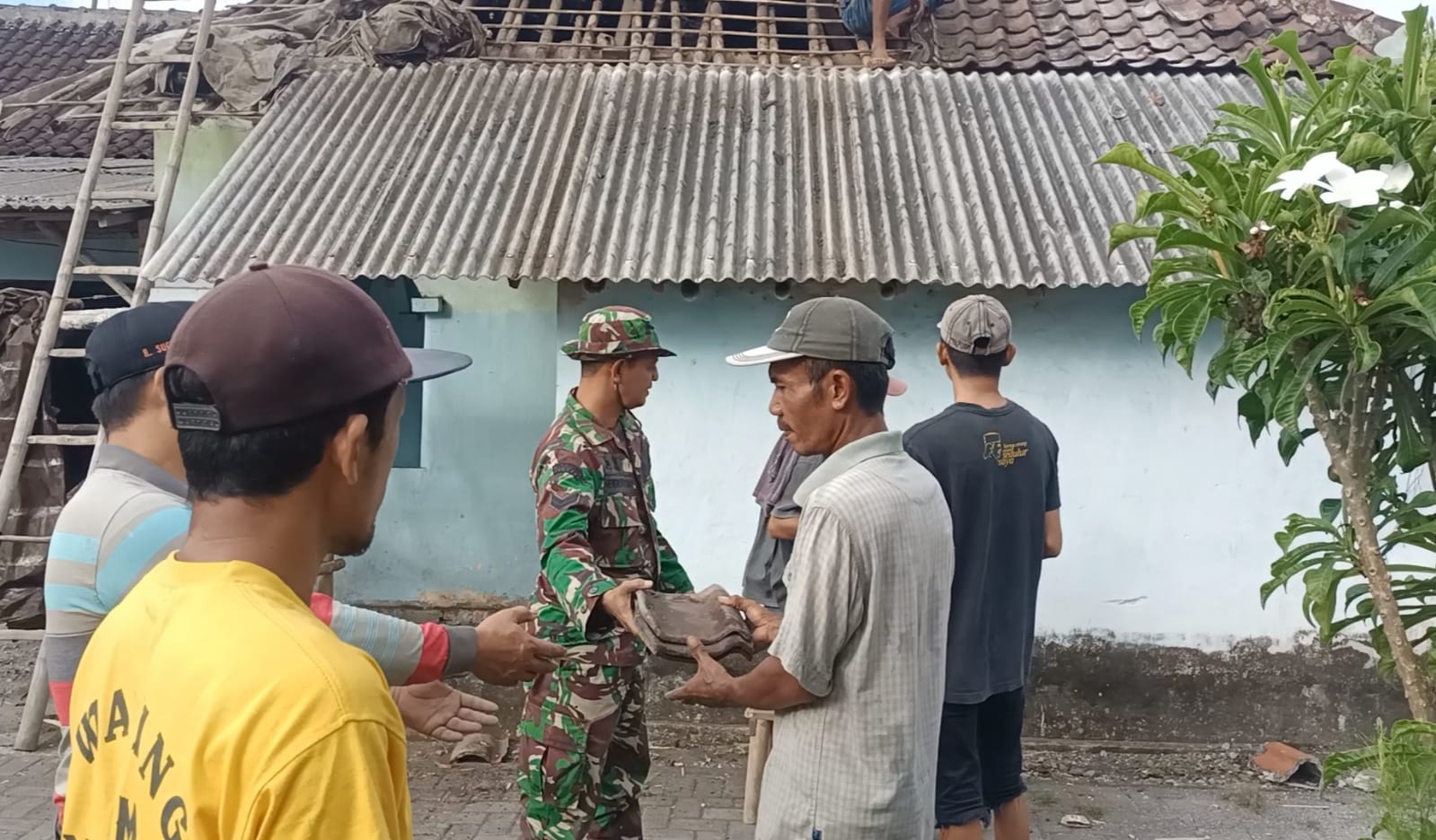 Babinsa Besuk Koramil 0821/10 Tempeh Sertu Hendro Kusumo, andil dalam kegiatan gotong – royong renovasi Mushola Al-Huda RT 20 RW 03 Dusun Warung Kutil Desa Besuk Kecamatan Tempeh Lumajang, Sabtu (3/6/2023).