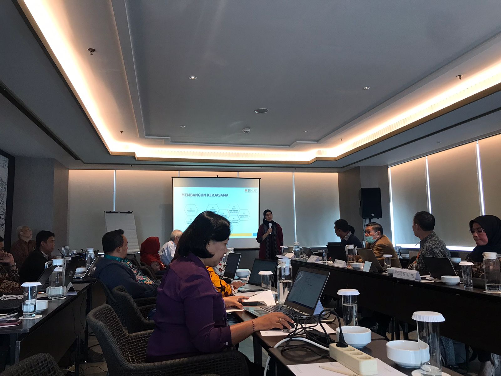 Pihak BNSP mengahdirkan dua pembicara professional dan sangat berpengalaman pada pelatihan ini, Ir. Muhammad Najib, MBA dan Dr. Nurul Indah Susanti, M.Psi. Pada pembukaan pelatihan dihadiri langsung Ketua BNSP Kunjung Masehat, SH, MM dan Kabag Sertifikasi Kompetensi BNSP, Lamria Napitupulu, SE, MM. Tak ketinggalan staf BNSP bagian lisensi Samuel S.N.