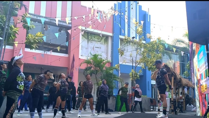 Pelataran depan Artotel TS Suites Hotel Surabaya yang berada di Atrium SUTOS lantai UG seakan mengobati rasa kangen suasana ramenya orang. Ya demikianlah rasa kangen tersebut terobati dengan kehadiran para peserta senam Fun Aerobic.