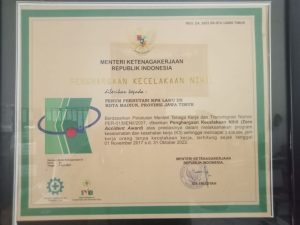 Demi mewujudkan keamanan dan keselamatan kerja, pemerintah melalui Kementrian Tenaga Kerja memberikan penghargaan Zero Accident Award melalui Dinas Tenaga Kerja dan Transmigrasi (Disnakertrans) Provinsi Jawa Timur kepada Perusahaan yang mampu menjalankan program keselamatan dan Kesehatan Kerja (K3) untuk Tahun 2022.