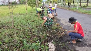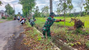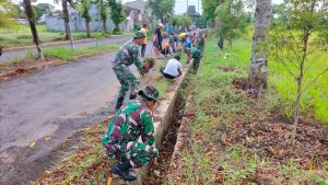 Wujudkan lingkungan sehat, Personel Posramil 0821/05 Kedungjajang bersama warga melaksanakan Gotong Royong pembersihan Jalan dan Selokan sepanjang 100 meter jalan Perum Surya Asri, Dusun Krajan Desa Wonorejo kecamatan Kedungjajang Kabupaten Lumajang, Selasa (5/11/2023).