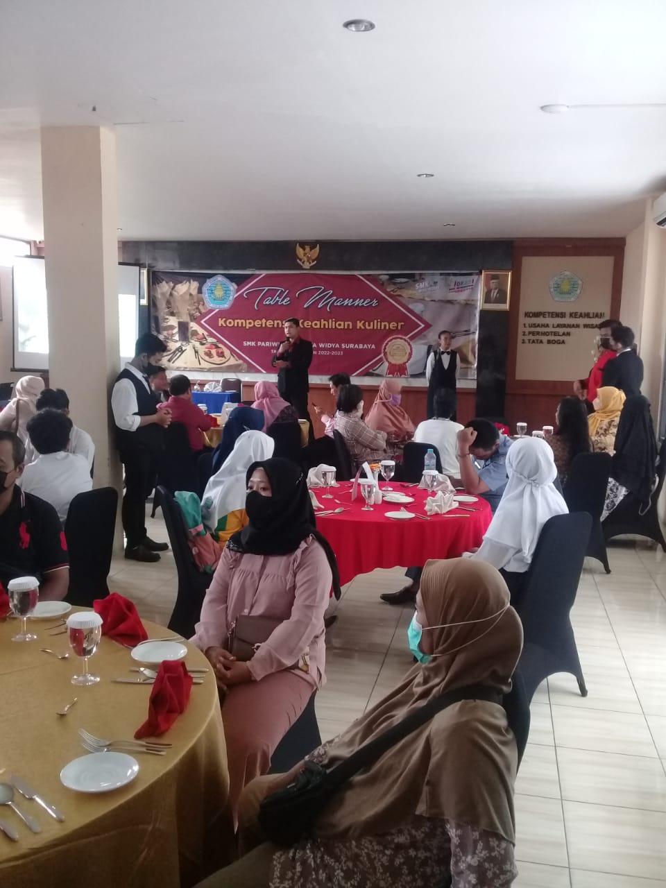 Orang tua murid manggut-manggut dan tersenyum lebar setelah mencicipi masakan putra-putrinya. Ini tanda bangga akan skill putra-putrinya. Maka, sudah barang pasti orang tua murid mempercayai proses pembelajaran yang ada di SMK Pariwisata Satya Widya Surabaya. Amin.