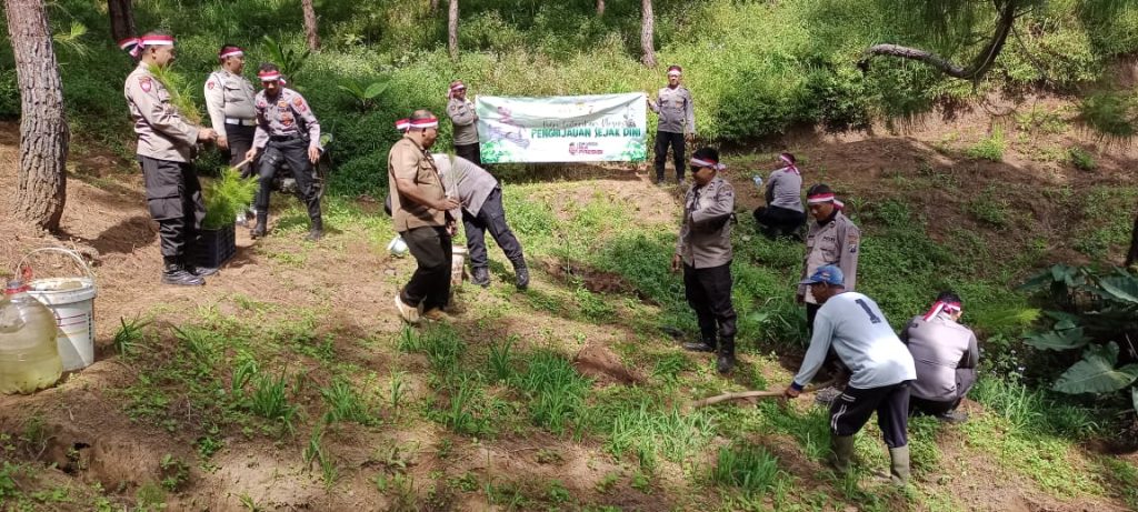 Perum Perhutani Kesatuan Pemangkuan Hutan (KPH) Probolinggo, bersama jajaran Polsek Sumber dan Stakeholder menggelar aksi penanaman bersama, di Petak 34D luas 10,70 hektar (ha) Resort Pemangkuan hutan (RPH) Sumber, Bagian Kesatuan Pemangkuan Hutan (BKPH) Sukapura dengan jenis bibit kayu Pinus, Salam dan Acasia sebanyak 150 plances, pada baru – baru ini