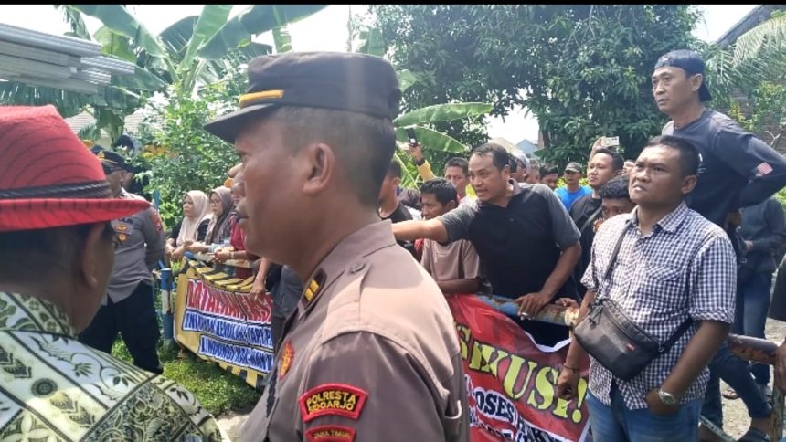 Warga Perumahan Puri Wardhani yang berada di Desa Jumputrejo, Kecamatan Sukodono, Sidoarjo pada Rabu (19/11/2025) meradang dan siaga menghadang sejak jam 9 pagi. Petugas gabungan dari Polsek Sukodono – Koramil Sukodono – Satpol PP serta Juru Sita dari Pengadilan Negeri (PN) Kelas I A Khusus Sidoarjo terlihat sudah berada di lokasi untuk melaksanakan eksekusi pengosongan lahan seluas 7.798 m2 yang telah ditempati oleh puluhan keluarga.